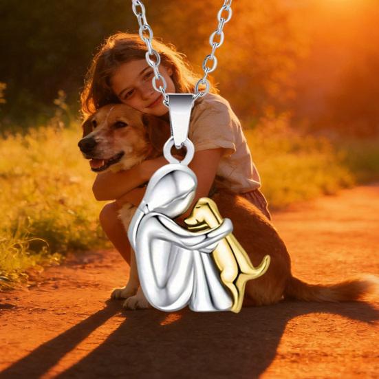 Ten wykwintny naszyjnik posiada wzruszający wisiorek przedstawiający kobietę obejmującą swojego szczeniaka, symbolizujący miłość i towarzystwo.. Wykonany z trwałego stopu z wysokiej klasy wzornictwem i precyzyjnym wykonaniem, oferuje zarówno piękno, jak i długowieczność.. Hipoalergiczny i wygodny w noszeniu, zapewnia brak podrażnień skóry, dzięki czemu nadaje się do codziennego użytku.