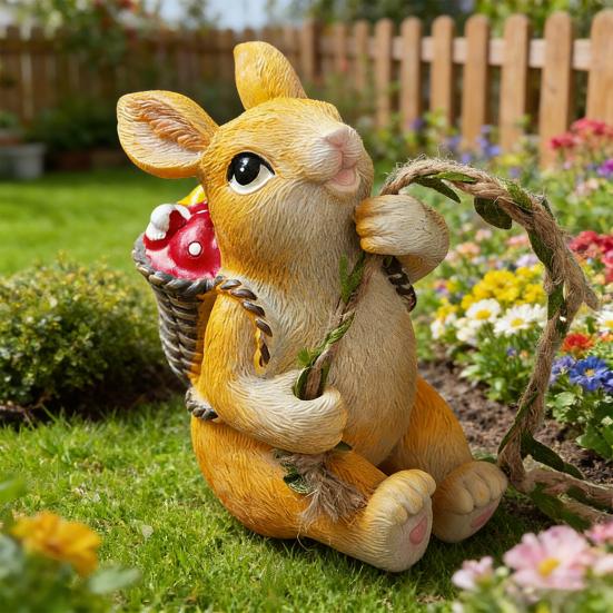 Yousheng Hanging Swing Statue Resin Craft Rabbit Ornament with Imitation Rattan Rope Tree Stump Base Small Portable Home Garden Decoration