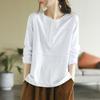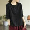 Literary Retro Spring and Autumn Long-sleeved T-shirt Women's Casual Thin Stitching Button Bottoming Shirt Top Women