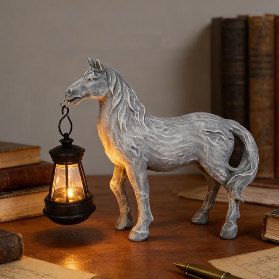 Unikalny Koń Design dla Przyciągającego Wzrok Dekor: Ta figurka, przedstawiająca charakterystycznego konia niosącego solarny lampion, dodaje uroku i elegancji każdemu wnętrzu.. Jego uderzająca sylwetka wyróżnia się w ogrodach, na podwórkach, na werandach lub we wnętrzach, czyniąc go niezapomnianym akcentem, który przyciąga uwagę i komplementy gości.