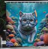 Shower Curtain: Adorable Cat Scuba Diving with Tropical Sea Life for a Fun and Whimsical Bathroom Decor