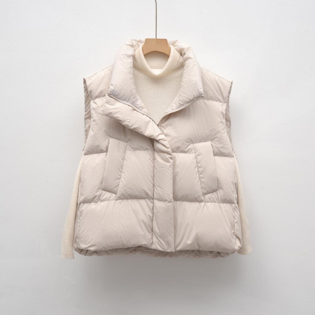 Prosta codzienna kurtka puchowa bez rękawów ze stójką, damska nowa jesienno-zimowa krótka luźna kamizelka