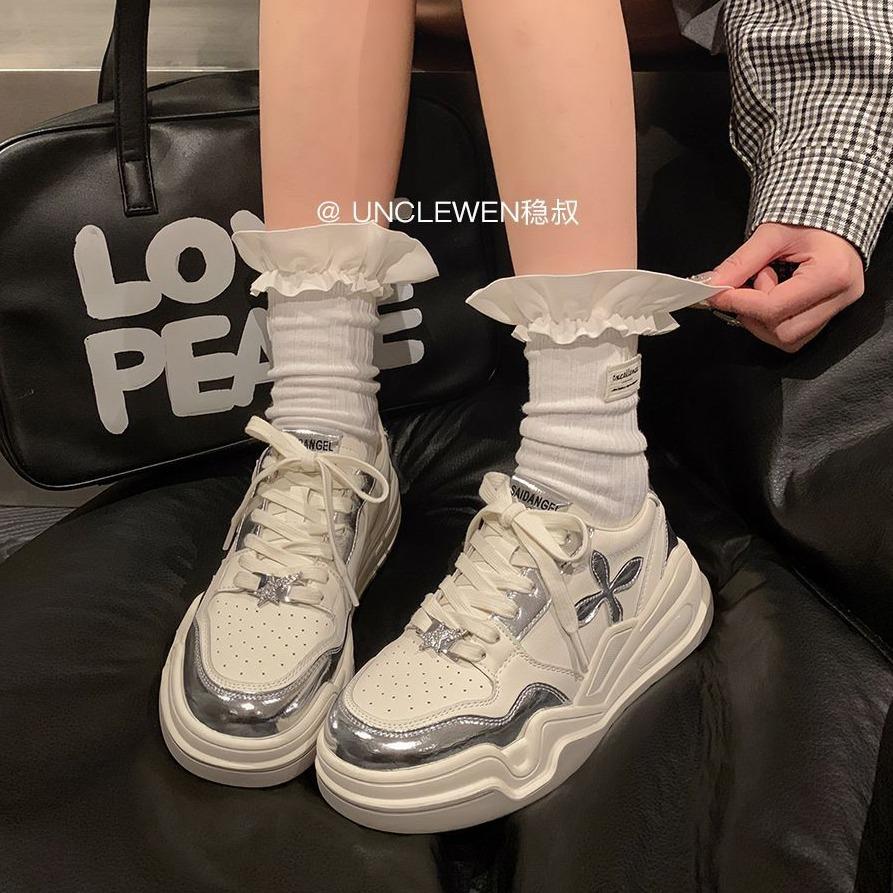 Cross flower women's shoes spring new platform white shoes versatile soft sole fashion casual shoes