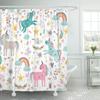 Kreskówkowy Zasłona Prysznicowa dla Dzieci Uroczy jednorożec Pięcioramienna gwiazda Kwiat Liście Tkanina Zestaw Zasłony Łazienkowej Zestaw Akcesoriów Kąpielowych Haczyki