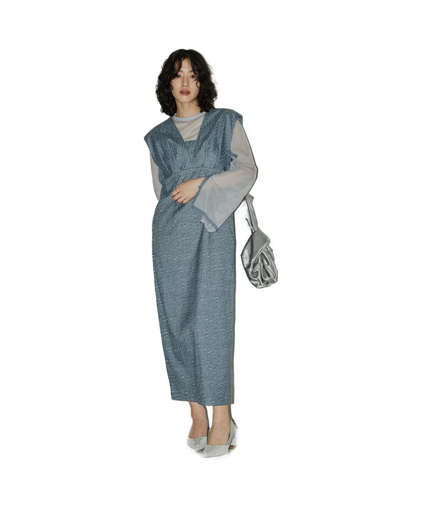 This dress set features a jacquard dress and a sheer tulle inner lining.