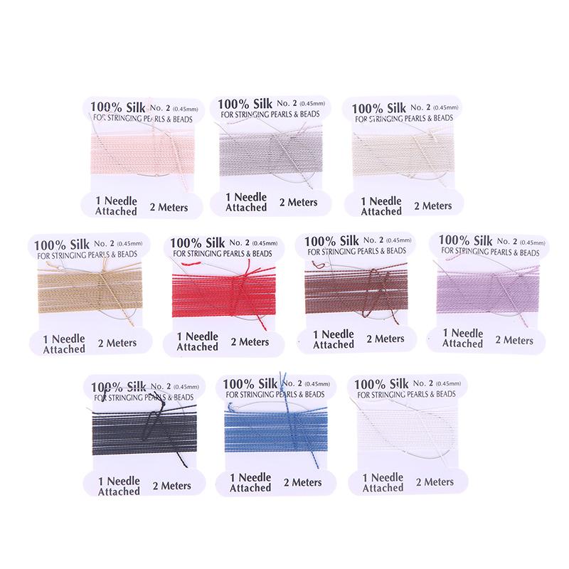 1Pcs 2# 0.45mm 10pcs/bag Handmade 100% Natural Silk Cord Rope With Beaded Silk Thread Needle End Silk For DIY Jewelry Making