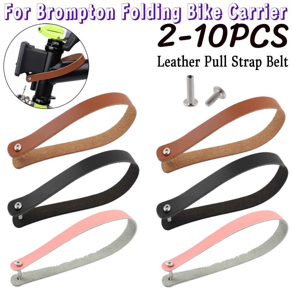 2-10PCS Leather Pull Strap Belt With With Wrench For Brompton Folding Bike Carrier Folding Bike Quick Release Handle Belt