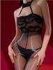 Xumi Sexy Lace Halter Neck Tube Top Open Crotch One-piece Stockings 5D Ultra-thin Glossy Silky Sheer Lingerie for Women
