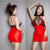Women Sexy Lingerie Dress Mesh Tight Skirt Transparent Splicing Pu Leather Short Skirt Night Club Wear Temptation Exotic Dresses