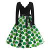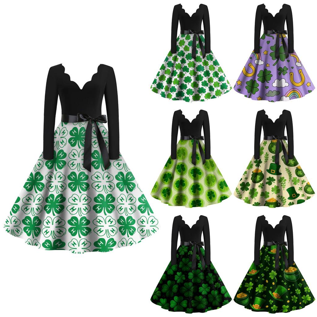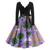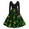 Damska Sukienka Codzienna Modna z Nadrukiem Dekolt V Retro Długi Rękaw