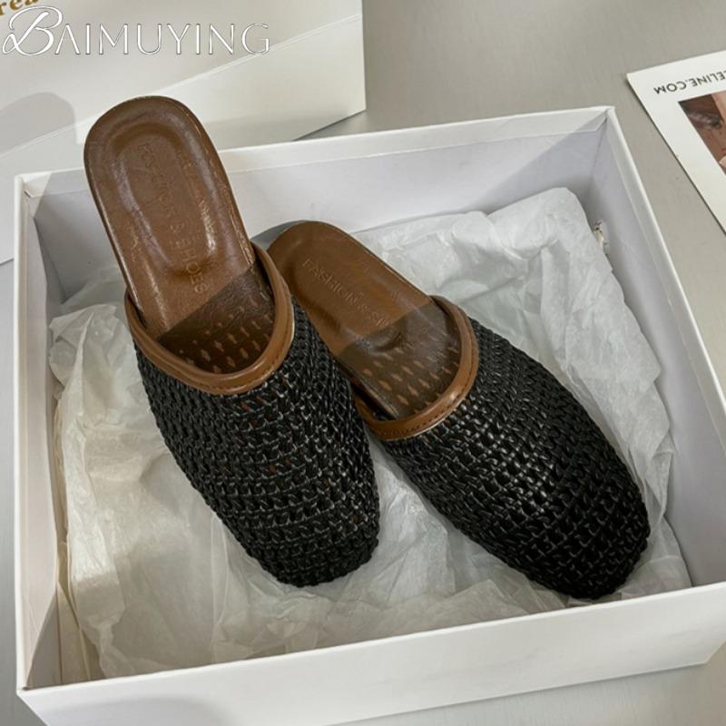 Modne Tkane Damskie Kapcie Casualowe Mokasyny Buty Kobieta Muły Płaskie Sandały Lato 2025 Trend Wygodne Miękkie Skórzane Płytkie Sukienka Zapatos