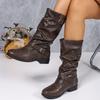 Moda 2025 Jesień Zima Damskie Kozaki Rycerskie Ozdobione Klamrą Paskową Kozaki Kowbojskie Koturn Gruba Podeszwa Antypoślizgowe Buty Outdoorowe dla Kobiet