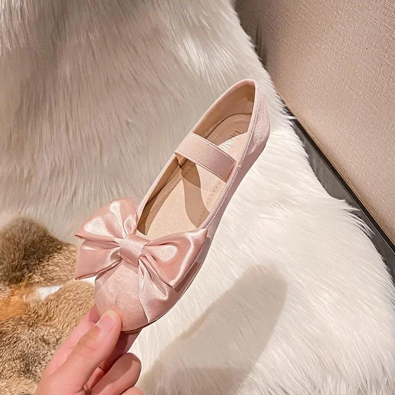 Fashion Bow Ballet Flats for Women Autumn New Ankle Straps Lolita Shoes Woman Thick Sole Slip on Mary Jane Shoes Ladies Single Shoes