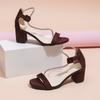 Modne Modne Srebrne Brokatowe Paski Sandały Imprezowe Damskie 2025 Lato Kwadratowe Buty na Wysokim Obcasie Seksowne Zamszowe Sandały z Paskiem na Kostkę Pokrywające Obcas