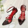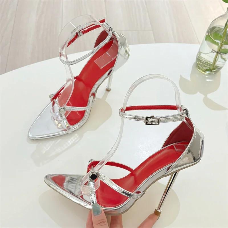 Modne Eilyken Seksowne Sandały Damskie na Cienkim Obcasie z Paskiem na Klamrę z Ćwiekami Letnie Z Odkrytymi Palcami Buty Stripperki Styl Design Wycinane Zapatos Mujer