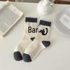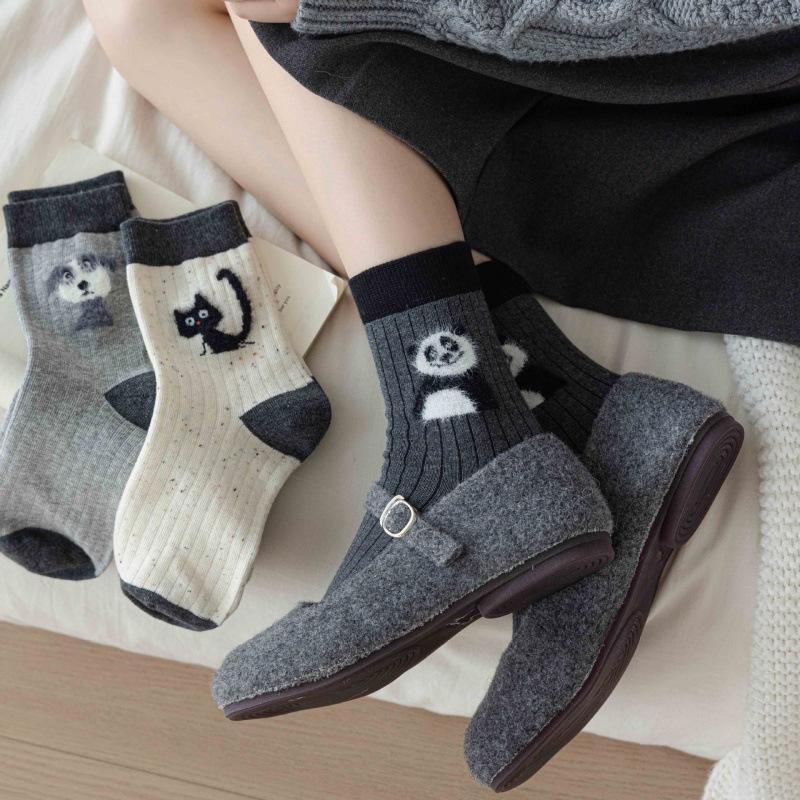 Szare Panda 3D Filcowe Kreskówkowe Skarpety do Połowy Łydki dla Kobiet - Japoński Styl Jesień/Zima Ciepło