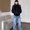 Amerykański Retro Futrzany Kołnierz Ciepły Jednolity Kolor Damski Bawełniany Płaszcz z Kapturem Ins Zima Luźny Casualowy Slim Bawełniany Płaszcz Kurtki