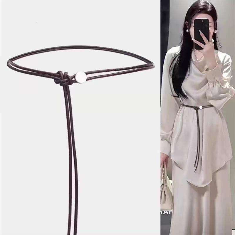 Damski Miękki Cienki Skórzany Pasek z Węzłem, Pasek z Sprężynową Klamrą do Sukienek i Spódnic, Czarny Akcesorium - Łańcuszek na Pas.