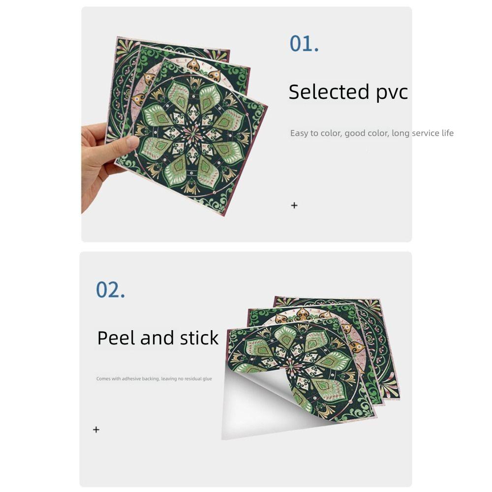 24Pcs/Set Mandala Style Ceramics Wall Sticker Waterproof Vintage Tile Decoration Film 10/15/20cm Self Adhesive