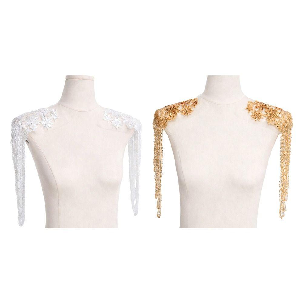 White Gold Color Shoulder Decoration Beaded Sequins Lace Handmade Shoulder Patches Tassel Chain Gold Embroidery Shoulder Strap