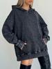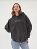 2025 fashion European and American style medium and long loose heavy industry printing American retro washed old hooded sweater