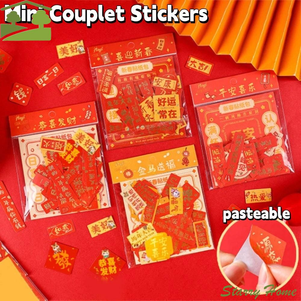 40pcs Pasteable Mini Couplet Stickers Good Luck Chinese Style New Year Blessing Stickers Festive Design Decorative Stickers