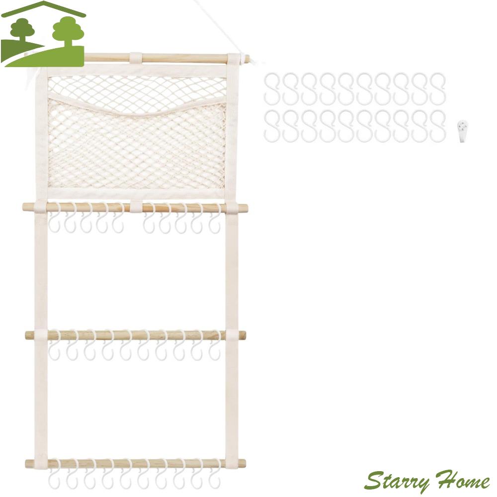 1 Set Large Capacity Hair Headband Storage Rack Space Saving Wooden Wall Hanging Storage Storage Bags Wooden Sticks