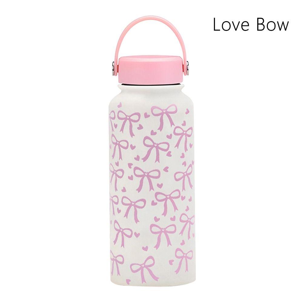 1000ML Vacuum Bottle Printed Design Portable Vacuum Sports Bottle Vacuum Insulated Printed Bow And Flowers Aquaflask Tumbler