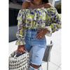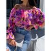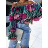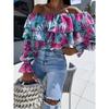 New Spring Off-the-shoulder Floral Printed Layer Ruffled Women Blouse Sexy Long Sleeve One-word Collar Shirt Sweet Loose Casual Tops Clothing