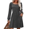 Damska sukienka z kwadratowym dekoltem i długimi rękawami, swobodna, śliczna, dzianinowa sukienka z kieszeniami