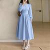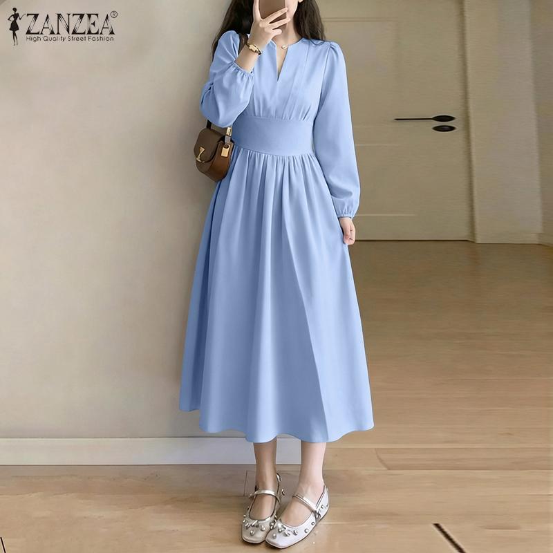 ZANZEA Kobiety Casualowy Dekolt V Rękaw 3/4 Jednolity Kolor Luźna Długa Sukienka