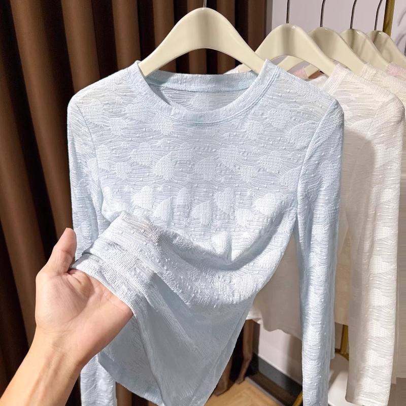 Nowa Okrągły Dekolt Długi Rękaw T-shirt Damski Chiński Styl Jesień i Zima Nowy Wyszczuplający Top Bazowy