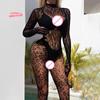 Leopard Print Babydolls Dress Plus Size Erotic Lingerie Women Sexy Open Back Cutout Bodystocking Mesh Sheer Baby Dolls Underwear