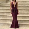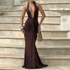 Damska Elegancka Seksowna Sukienka z Głęboko Wyciętym Dekoltem V i Odkrytymi Plecami, Marszczona