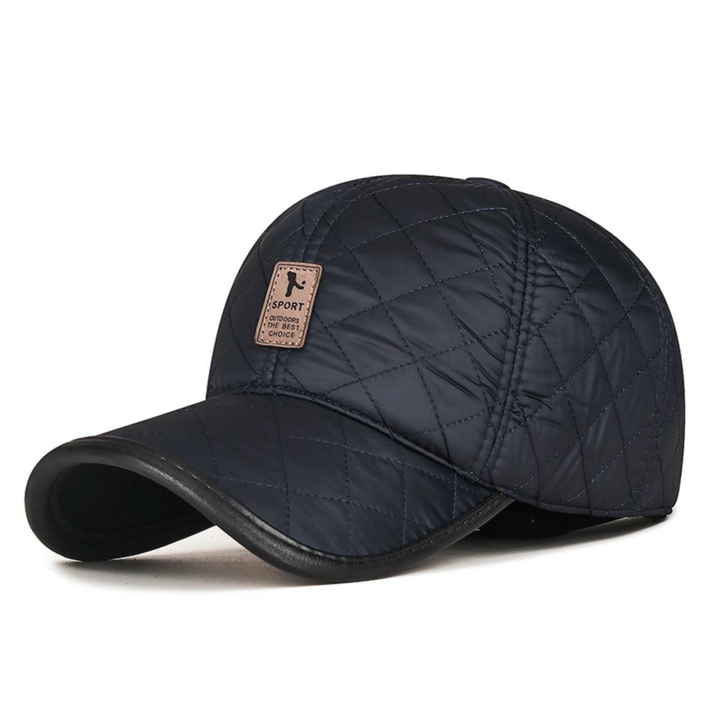Winter PU-Lined Thickened Windproof Thermal Earflap Middle-Aged And Elderly Imitation Leather Quilted Embroidered Fashion Cold-Weather Baseball Cap