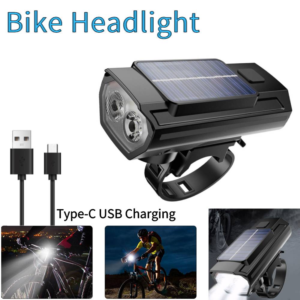 Solar LED Bicycle Light USB Charging MTB Road Bike Front Lamp Waterproof Bike Handlebar Flashlight with Horn Bicycle Accessories