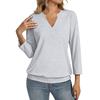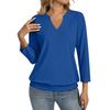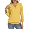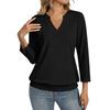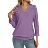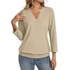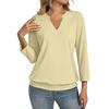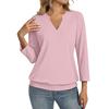 Damska Codzienna Modna Koszulka z Rękawem 3/4 Top z Dekoltem V
