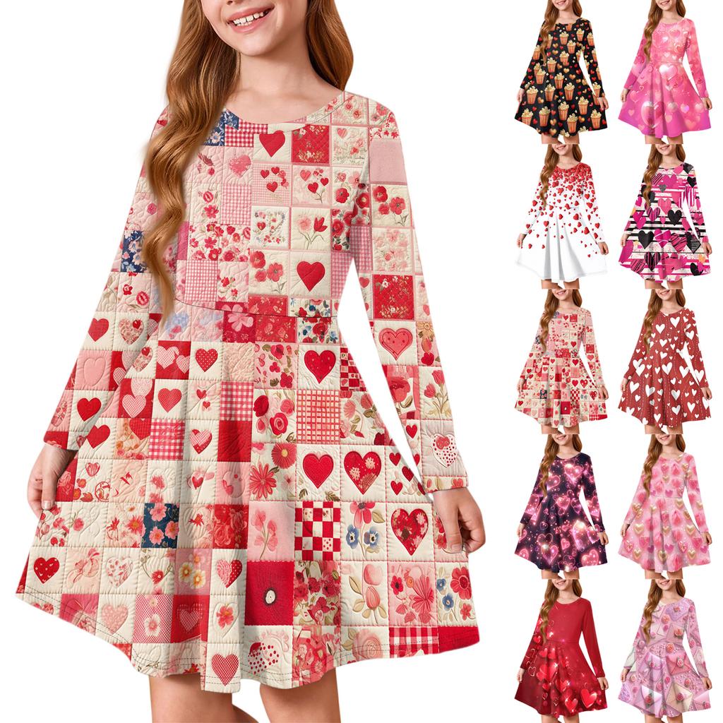 Letnia sukienka księżniczki dla dziewczynek - Sukienka T-shirtowa A-line z długim rękawem Walentynki