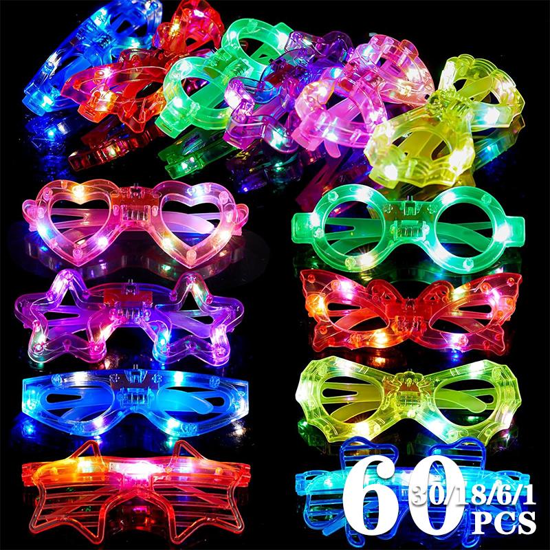 1-60 SZT Świecące w Ciemności Okulary Hurtowe Okulary LED Świecące Dekoracja Ślubna Upominki na Przyjęcie Świecące Okulary dla Dzieci Dorosłych Zaopatrzenie na Przyjęcie