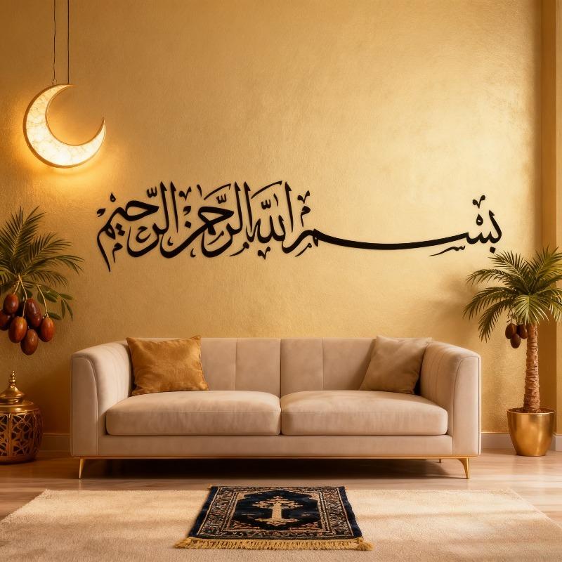 Naklejka Ścienna Kaligrafia Arabska Sztuka Bismillah Koran Islamski Wystrój Domu do Salonu Sypialni Pokoju Muzułmańskiego Korytarza Prezent na Ramadan