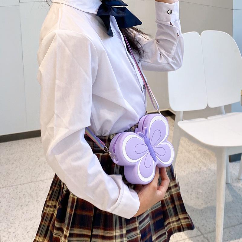 Modna silikonowa torebka crossbody dla dzieci w kształcie motyla z kokardką - Idealna do przedszkola