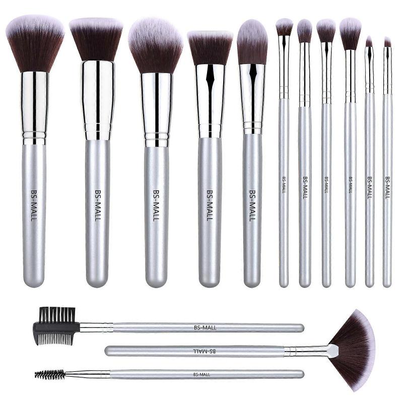 Makeup Brushes Premium Synthetic Foundation Powder Concealers Eye Shadows Makeup 14 Pcs Brush SetSilver Purple with case