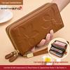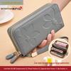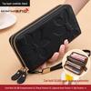 Damski Portfel Kopertówka z Dużą Pojemnością ze Skóry Bydlęcej o Fakturze Liczi z Podwójnym Zamkiem