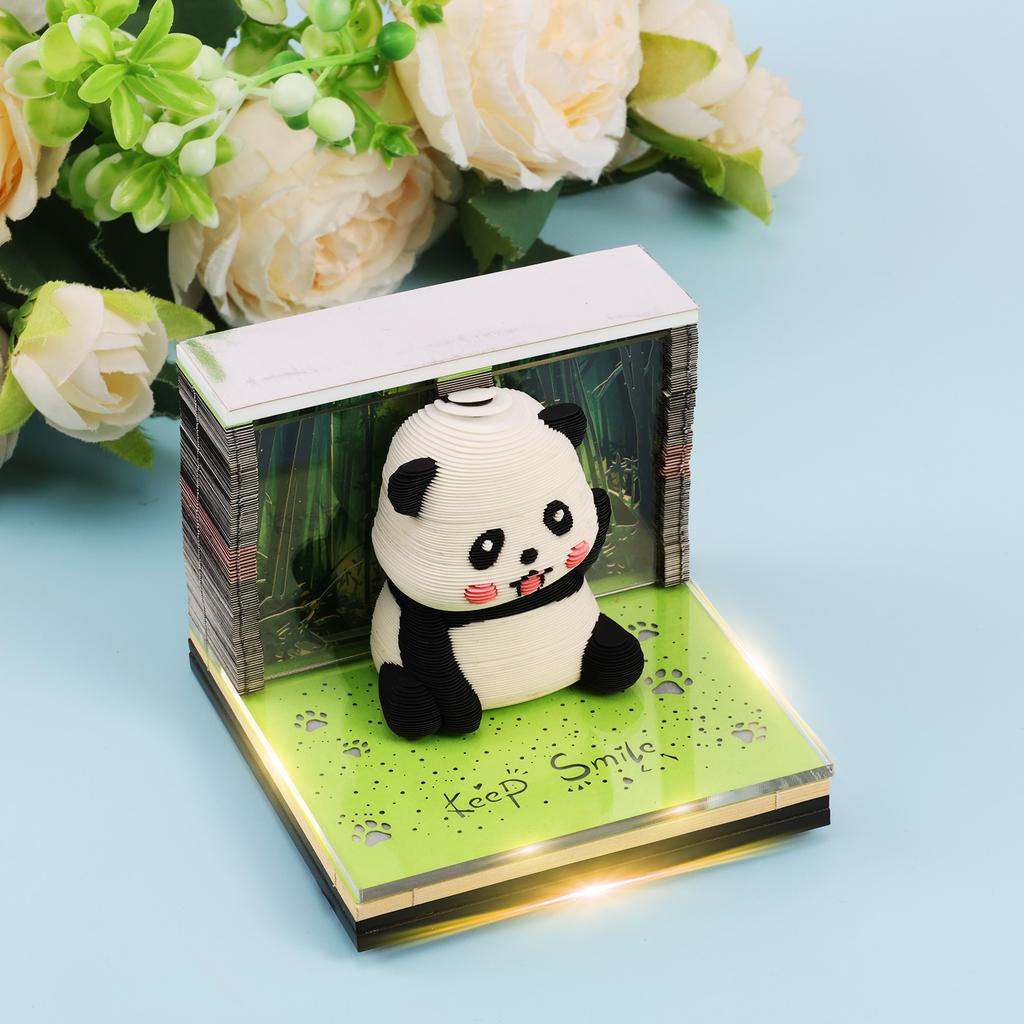 3D Stereo Notepad Tear Away Paper Carving Panda Shape Three-dimensional Note Book with LED Light for Office Desk Home Decorative
