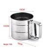 Ręczny przesiewacz do mąki i cukru ze stali nierdzewnej, półautomatyczny, typu kubkowego.