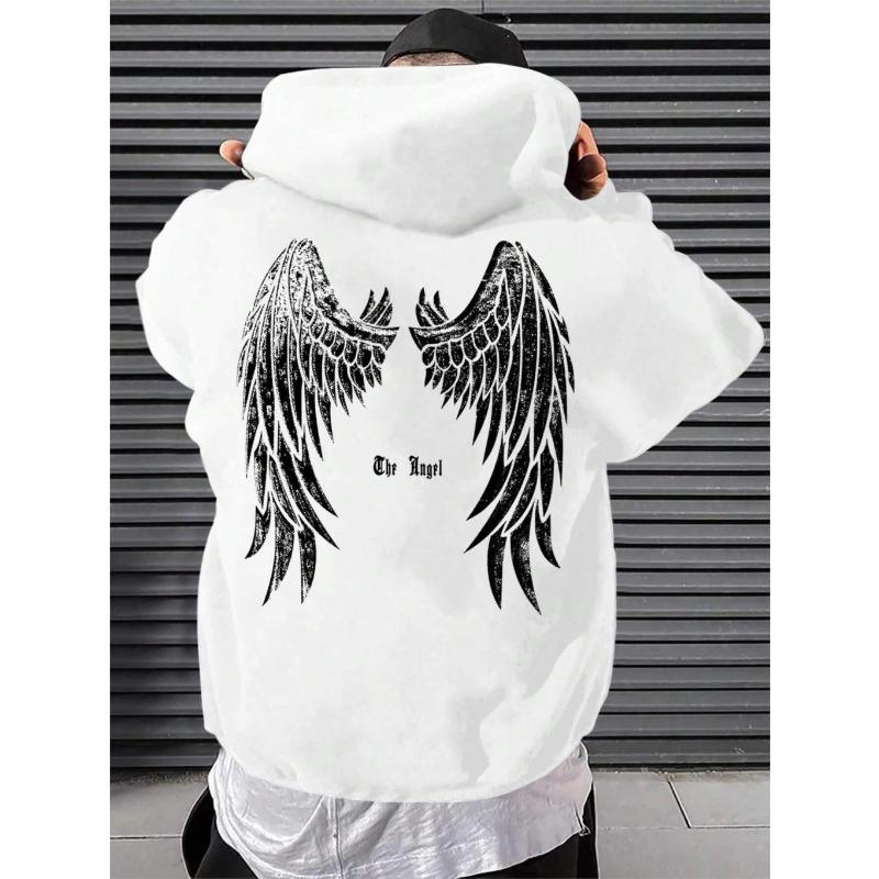 Autumn Hoodie for Man Angel's Wings Printing Male Hoody Match Loose Sweatshirt Fashion Fleece Basic Daily Comfortable Hoodie