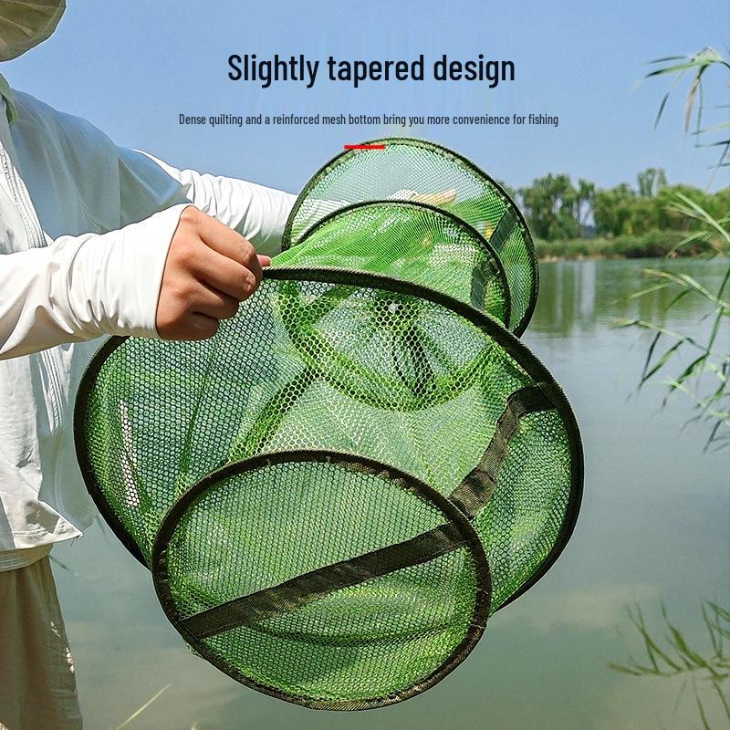Compact Folding Fish Basket: Dense Mesh, Anti-Jump, Quick-Drying Live Fish Bag for Fishing