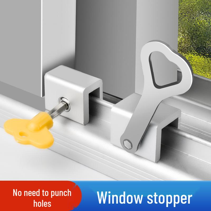Bezpieczna blokada okienna dla dzieci bez wiercenia - Aluminiowy ogranicznik antykradzieżowy