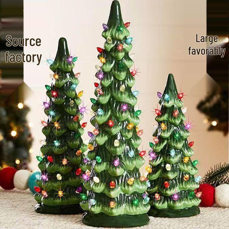 Zasilana bateryjnie świecąca choinka z kolorowymi światełkami i żywicznymi ozdobami - Idealna do dekoracji świątecznych na biurko
