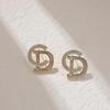 Kolczyki S925 Srebro Perła & Diament Litery - Koreańska Moda Wszechstronne Wkrętki & Wiszące